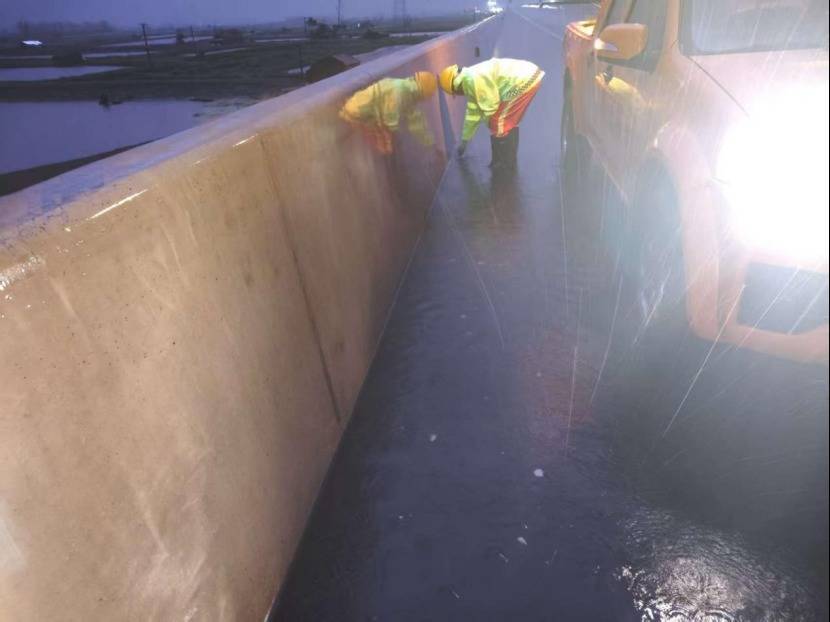 暴雨中,该公司养护人员联合巡检办、监理及路政、高警等部门配资中国登录,对全线易积水路段、高填方边坡、桥梁泄水孔及路基排水系统展开了“过筛子”式的错峰巡查与疏通清理,严防雨水长时间浸泡导致路基失稳,并连夜组织对高边坡、桥梁等关键点位进行专项安全交底与拉网式排查,确保排水系统效能最大化。